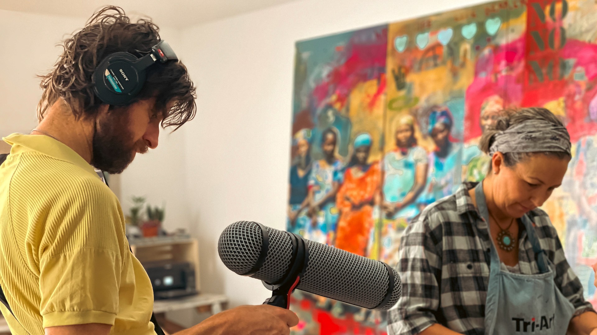 So, we spent 8 days in the studio with Heather over a 6-week period. We got access to DRC footage, images she hadn't seen since the trip, and let her encounter them again in real time. The film doesn't explain the crisis. It shows you what it does to her when she remembers it.