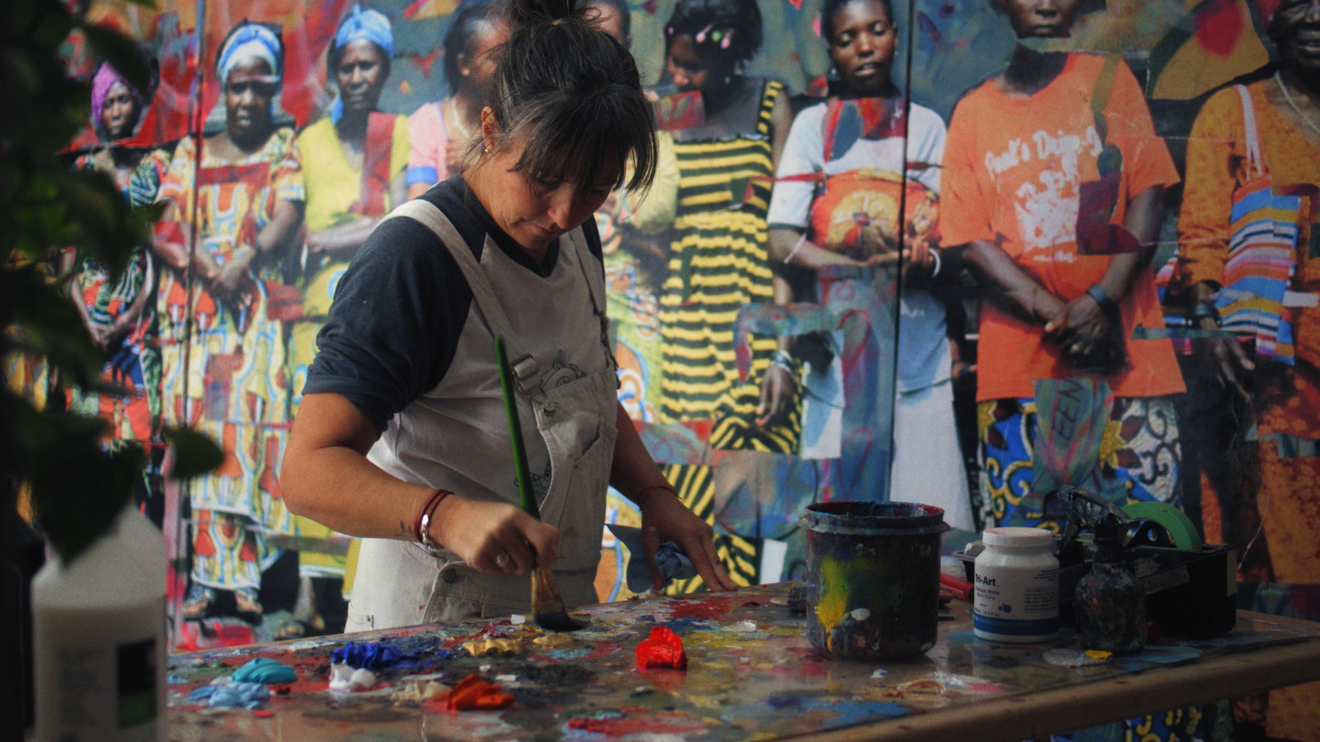 In our research phase, as we explored and understood her story, Heather felt connected to the women she met in Goma at the Tchukudu Kids Home. That connection, and a specific photograph, inspired the painting.