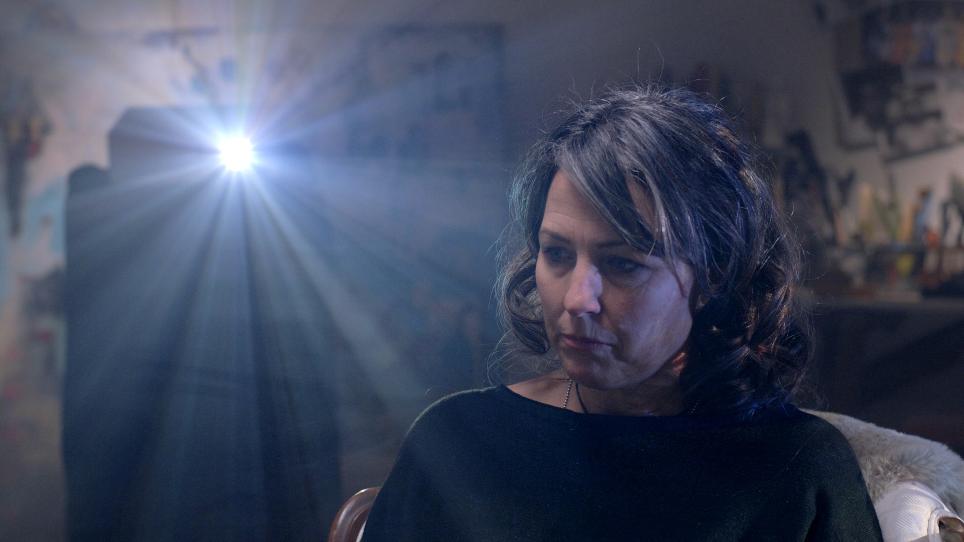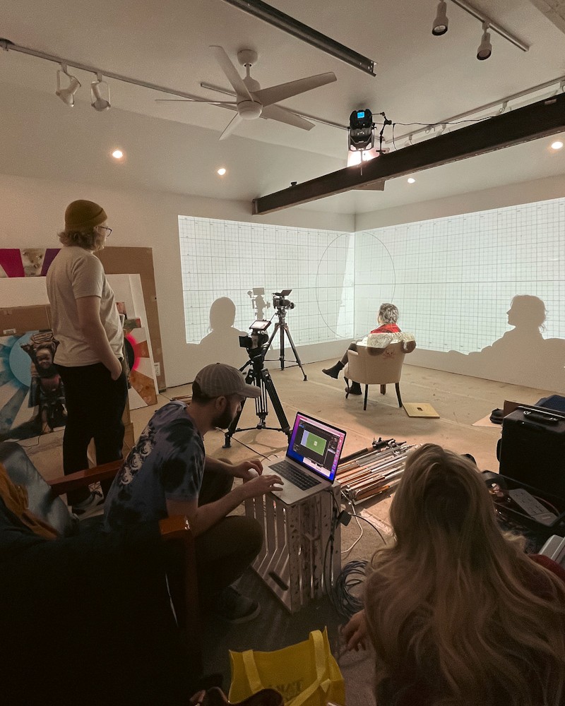 When the interview came, Taylor was running projections in real time, cueing footage on the walls around her based on where the conversation was going. Heather hadn't seen any of it in year, and didn’t know what we’d show her.